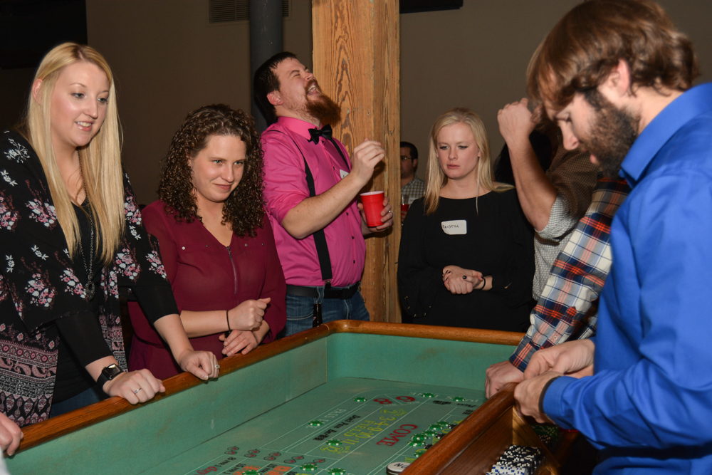 We provide the tables, chips, dealers, games, raffle tickets and fish bowls for prize drawings*. Attendees all receive a cup full of chips to use throughout the night playing games to earn more chips. At the end of the night, they turn their chips in for tickets, and can place those into fish bowls to be drawn for prizes.